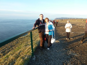 My wife and I in the midnight sun at the Nordkapp June 2012 | SkarsvØg, through the hole you can see the Nordkapp |