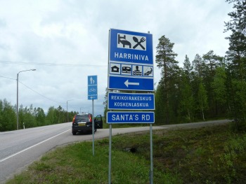 Route 21 (E8) travelling north from Tonio along the tornio river towards the Arctic Circle in Northern Finland. The scenery is pretty much the same as Northern Sweden. Lots of trees and not many people. | This also is by Harriniva. You can go on husky sleds here in the winter. In the summer there is white river rafting available. |