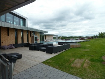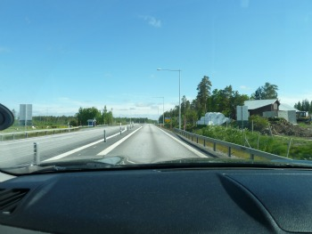 ![]() Driving North from Stockholm on a typical uncrowded Swedish Road. There is traffic for about 20 miles North of Stockholm but then it peters out. Where the road has a cenrtal crash barrier like this one the speed limit is 110 kph. Where there is no barrier it is 90 kph. There are regular speed cameras which are of a prettier design than either the English or the Norwegian ones but they can still catch you out. | ![]() Outside the East Cape Hotel in Haparanda. It looks better when the sun is shining. Just on the other side of the river is Finland. Tourists come from all over the world to visit this spa. Summer temperatures around here can get quite warm, hence the outdoor pools. but in the winter it can go down to minus 25-30 and the gulf of Bothnia freezes over. A summer bonus is the long hours of daylight. |