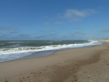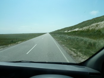 Jylland (Jutland) One side of the sand dunes. The road goes for many miles with the sand dunes on one side and a fjord on the other side. The strip of land with the road on it is probably only about 1 Km. wide. There are many places to park and walk over the dunes onto the beach.. Crowds are not usually a problem. Danish summer temperatures can get into the 30C range. | The other side of the sand dunes. The West coast of Jylland is almost one continuous beach for over 200km. with only a few breaks. In sumer the sea is quite warm. Try Kvide Sande about 63km north of Esbjerg or Lokken about 28 Km South of Hirtshals for nice seaside towns. In places you can drive from town to town along the beach. |