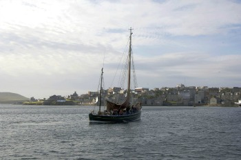![]() Up Helly! Europe's largest fire festival held in the Shetlands on the last Tuesday of every January. The Wednesday is a public holiday to allow for recovery. The festival consists of a torch lit procession culminating in the burning of a galley. After this there are performances and dancing all over the Islands. | ![]() The Swan in Lerwick. Lerwick is the capital of the Shetlands. It is where the ferry from Scotland arrives at about 8 a.m. Nothing is open at this time so, if you want tea or coffee try The Seaman's Mission. Very friendly and good value. |