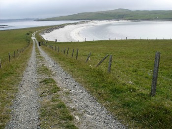 ![]() The end of the country. The furthest point north in the British Isles. Actually the small rocky outcrop called outstack is slightly further North but Muckle Flugga is generally regarded as the top of The British Isles. Now you know. A great answer for quizzes! | ![]() Two beaches for the price of one. To get here you have to park and walk down this cart track. |