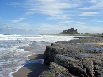 The Lindisfarne Priory on Holy Island which is reached by a causeway at low tide. This National Trust property is situated off the A1 between Alnwick and Berwick on Tweed. You turn off near the village of Beal and follow minor roads. It is well sign posted. Please note that Vikings are not welcome here they caused to much damage last time they visited. | Bamburgh Castle, one of the finest castles in England is just a few miles South of Holy Island. It is reached off the A1 between Alnwick and Berwick on Tweed. You turn off near the village of Belford. |