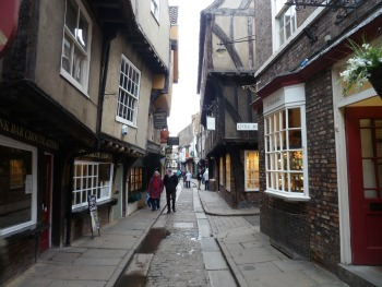 The Shambles near the centre of York is a famous medieval street lined with interesting little shops. Guy Fawkes,reputedly the only person to ever enter Parliament with honest intent, was born near here. | The Wheel of York located near the main railway station towers 60M. above the city and gives an excellent view. It goes around three times and stops for a couple of minutes at the top so that you can take photos. |