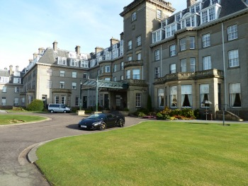 The Famous Gleneagles Golf Hotel near Auchterarder, just off the A9 about 13 miles Southwest of Perth. | A feat of engineering. The Falkirk wheel lifts canal boats from a low level up to a higher level. You can have a canal boat excursion here and sit in the boat while it is lifted up. Falkirk is off the M9/M876 about 30 miles WNW of Edinburgh |